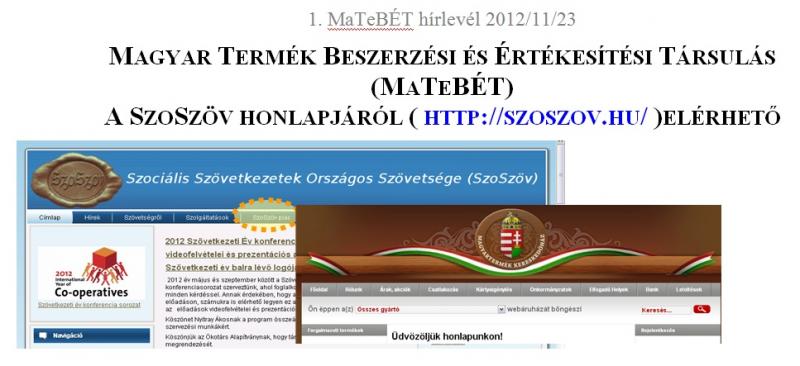 MAGYAR TERMÉK BESZERZÉSI ÉS ÉRTÉKESÍTÉSI TÁRSULÁS (MATEBÉT) A SZOSZÖV HONLAPJÁRÓL ( HTTP://SZOSZOV.HU/ ) ELÉRHETŐ